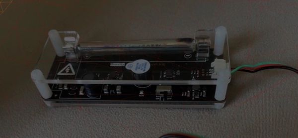 Neopixels making a cool Cylon effect. The blue glow at the bottom is from a cooling fan's LED shining on a clear acrylic separator.